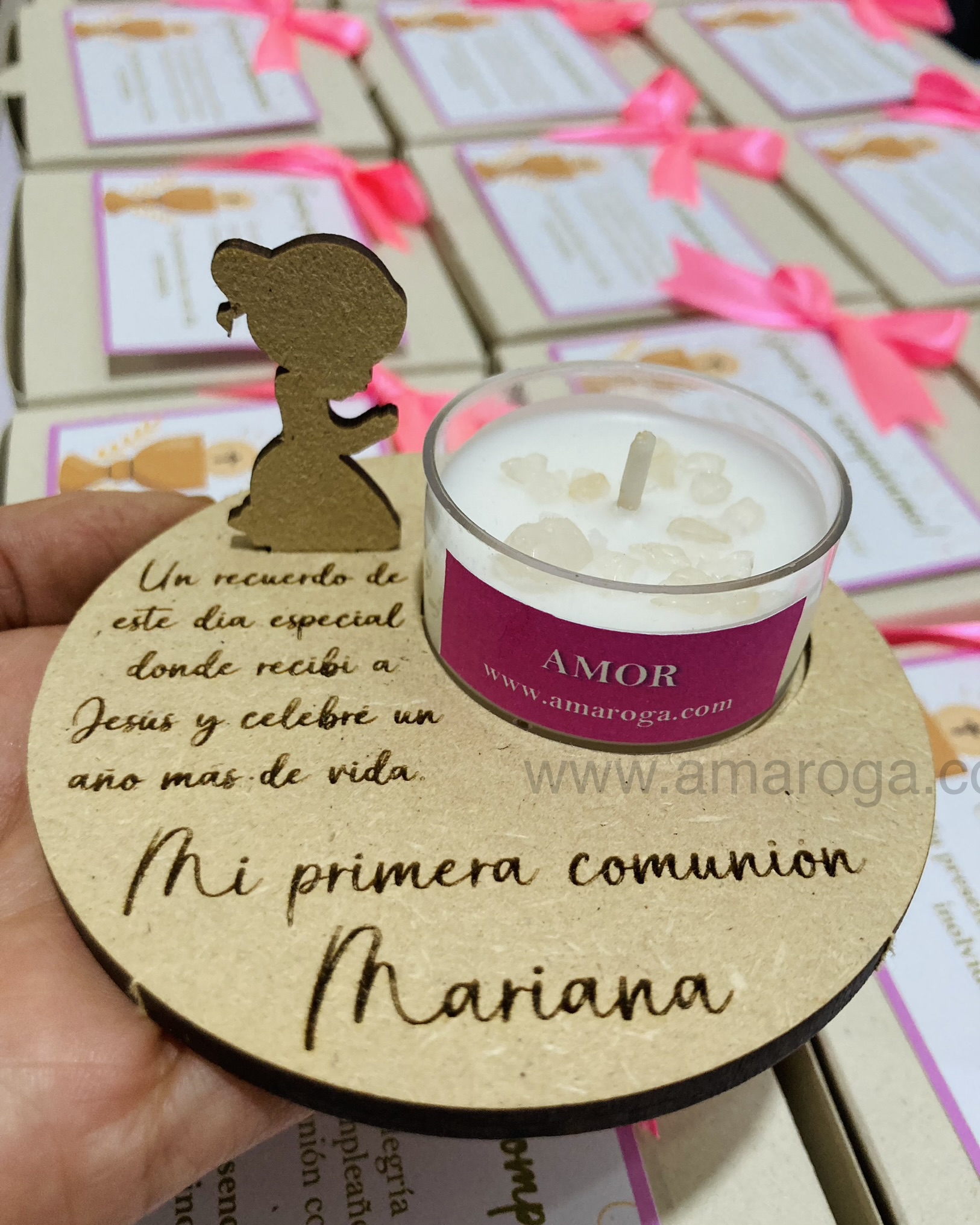 Recordatorio primera comunión – Mini porta vela con vela