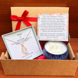 Cajita feliz día | Collar cuarzo cristal una piedra con vela mini