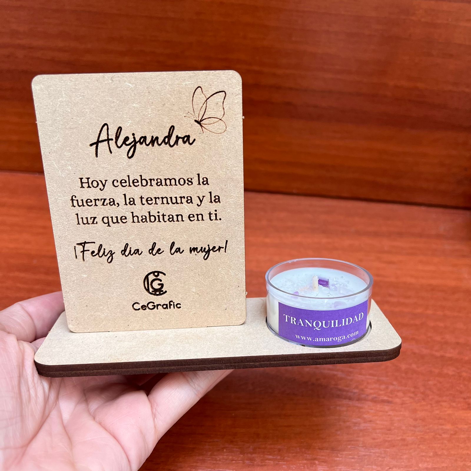 Recordatorio placa conmemorativa con vela – Día de la mujer